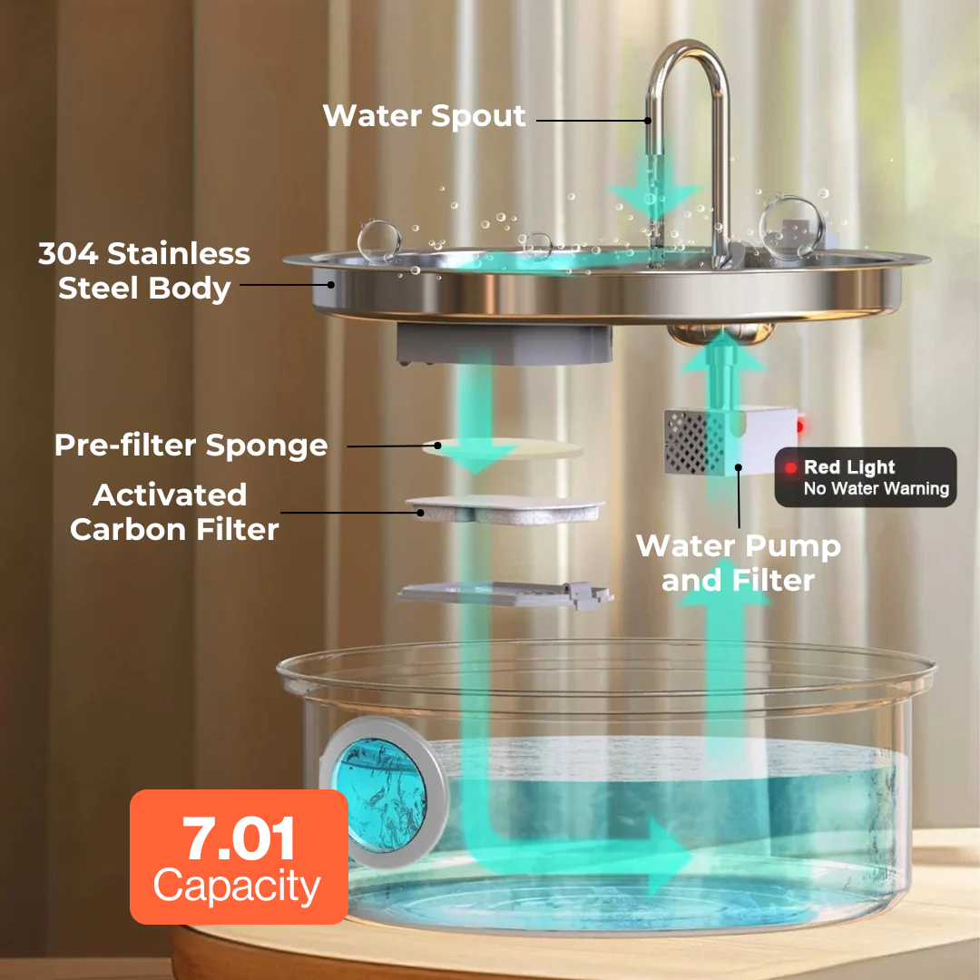 If in doubt, we always recommend sizing up. A larger fountain means less frequent refills and ensures your pet always has access to clean, flowing water—even during hot days or long work hours